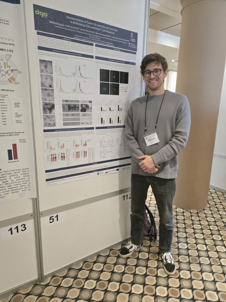 During the conference, Mikołaj had a chance to present a poster titled: “Characterization of tumor LDs and sEVs and their role in modulating CD1a-restricted T cell responses”.